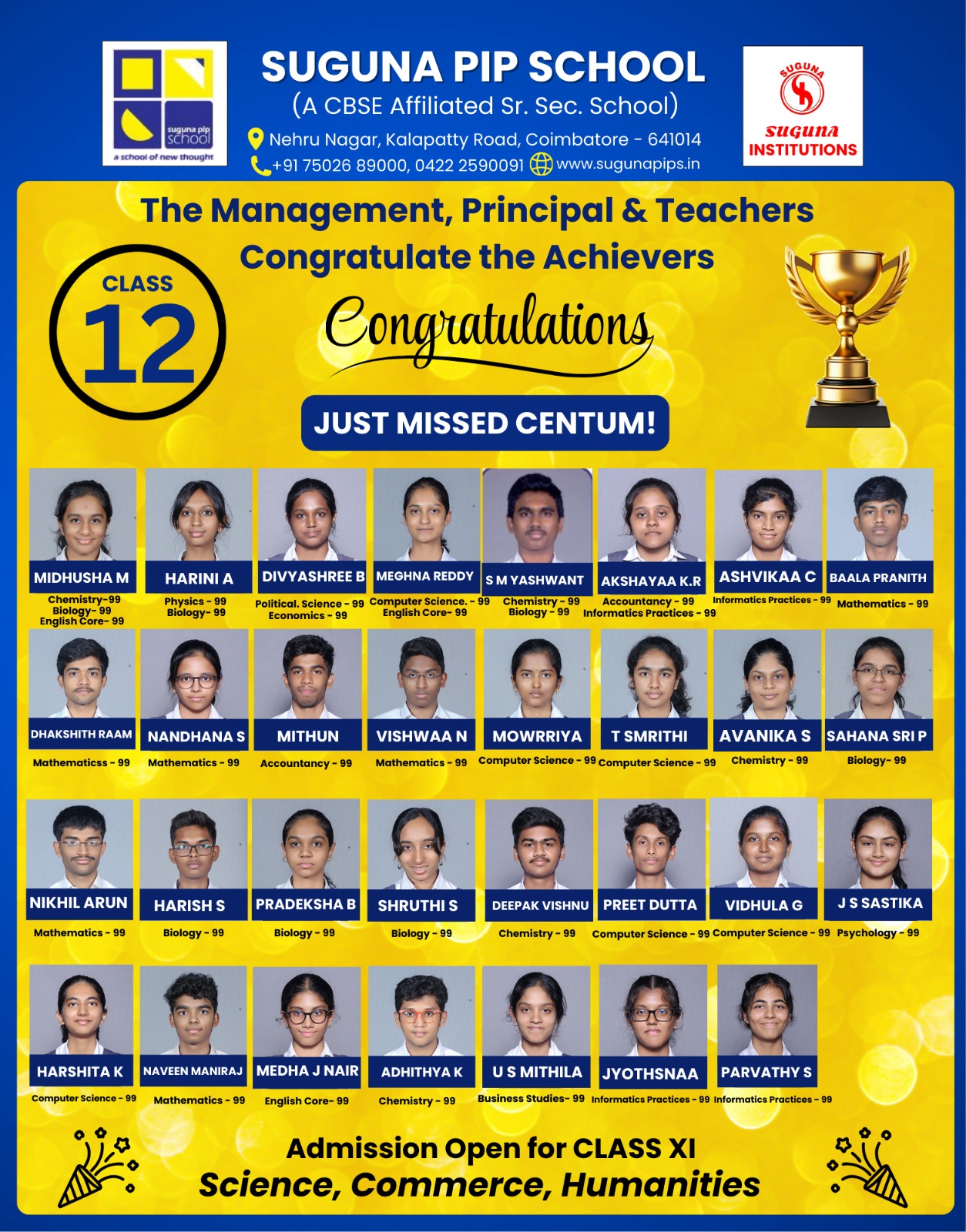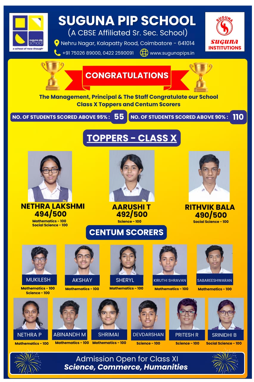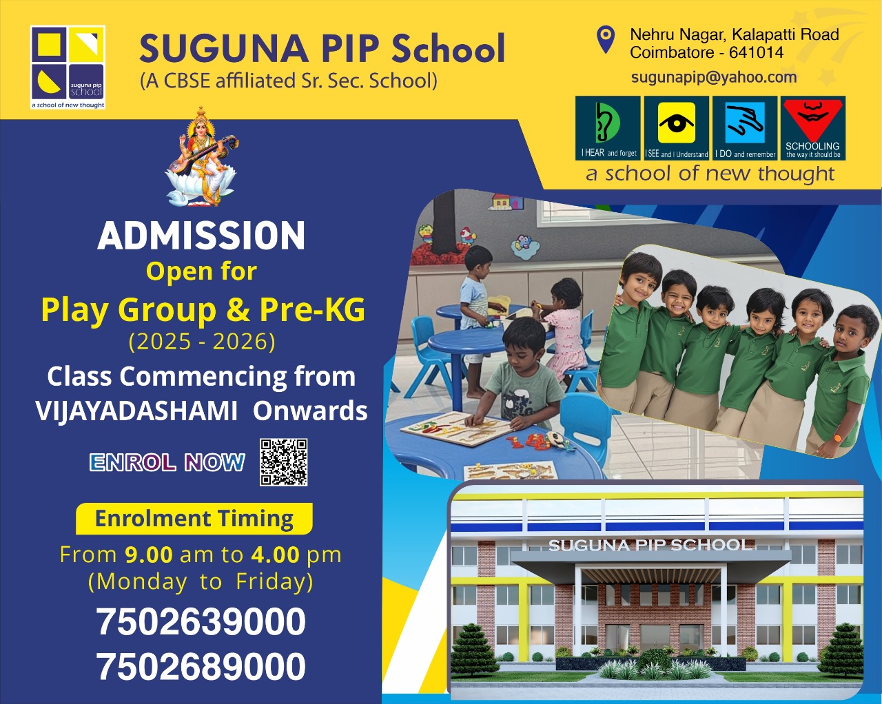 Welcome to the website of SUGUNA PIP School, a learning community dedicated to our mission of educating and inspiring today's children to be responsible, productive and ethical world citizens. We want each student to achieve his or her dreams and to become a passionate learner prepared to adapt and contribute in a rapidly changing world.